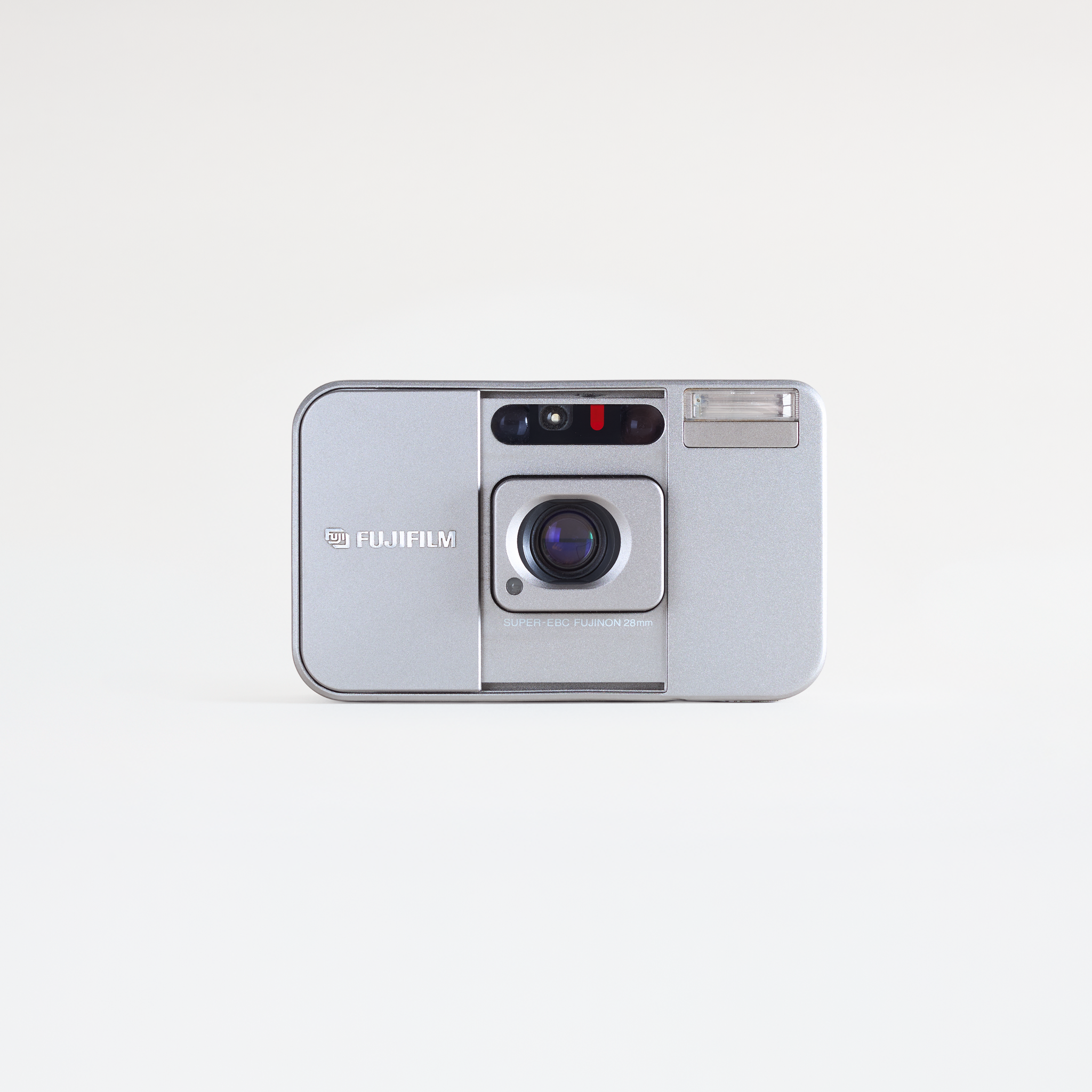 Fixed 28mm f/3.5 Super EBC Fujinon lens. Programmed electronic shutter: 1/2–1/800s. Uses 1× CR2 battery. DX-coded ISO support (ISO 50–1600).