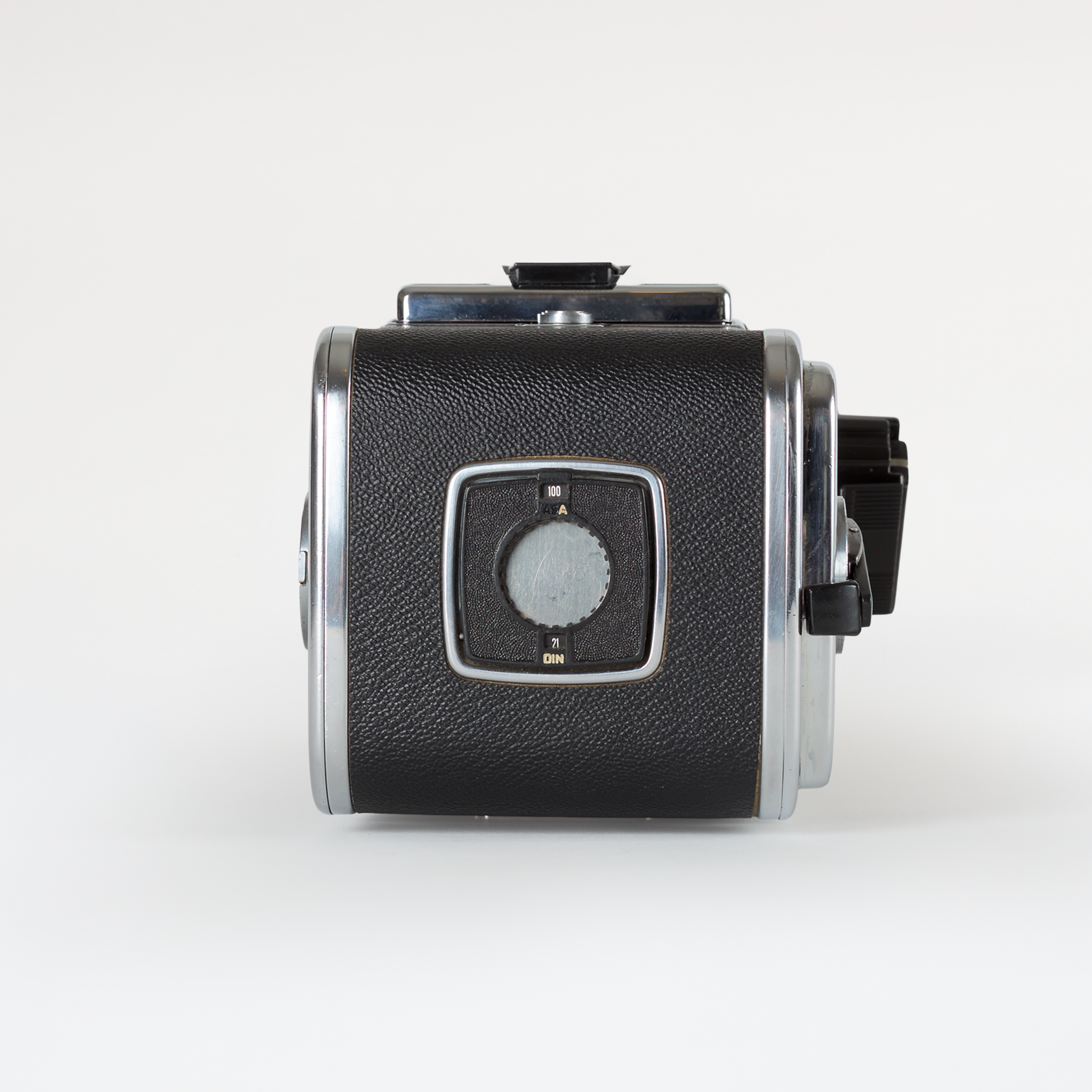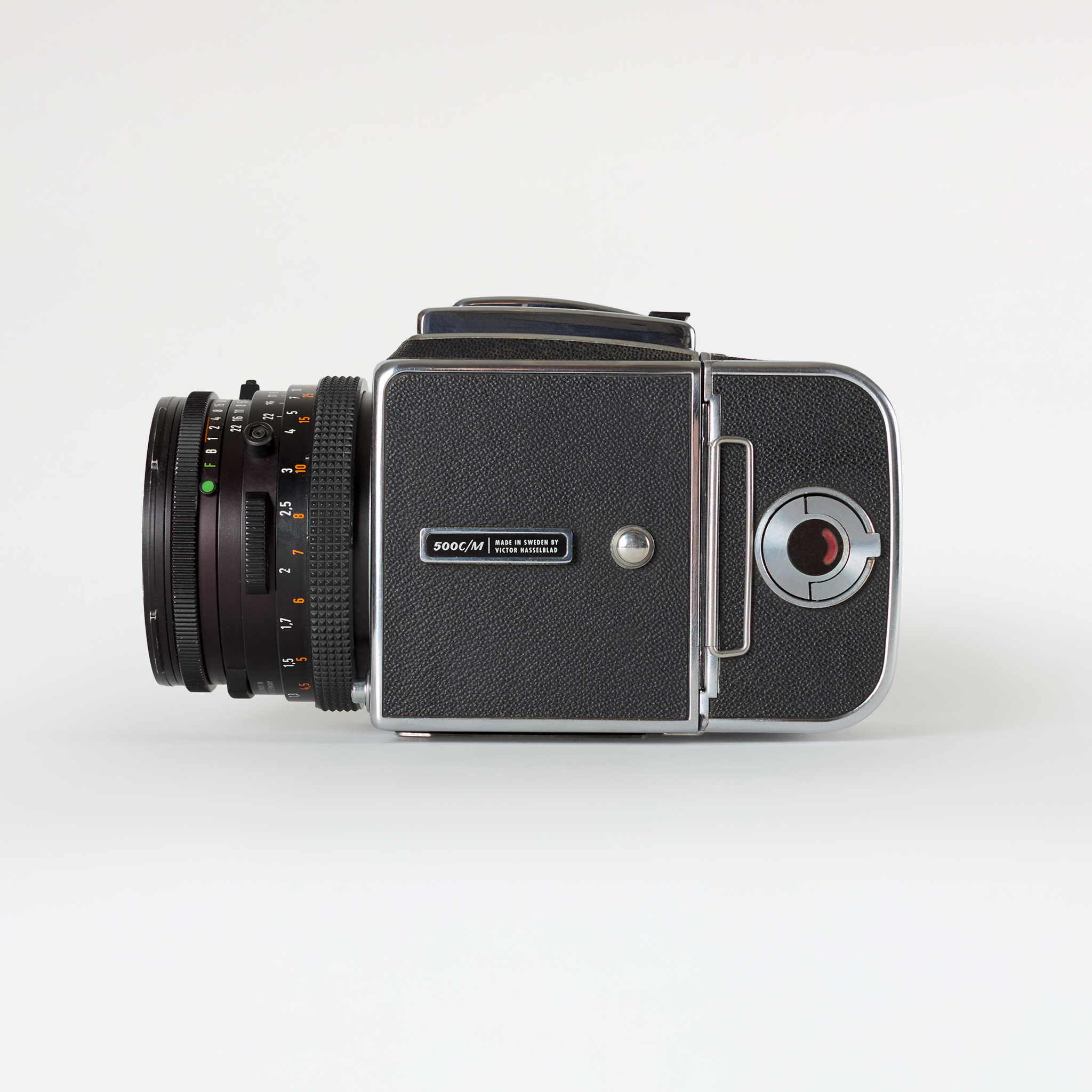 Built in Sweden, the 500 CM features a leaf-shutter lens system, interchangeable film backs, and bright waist-level finder