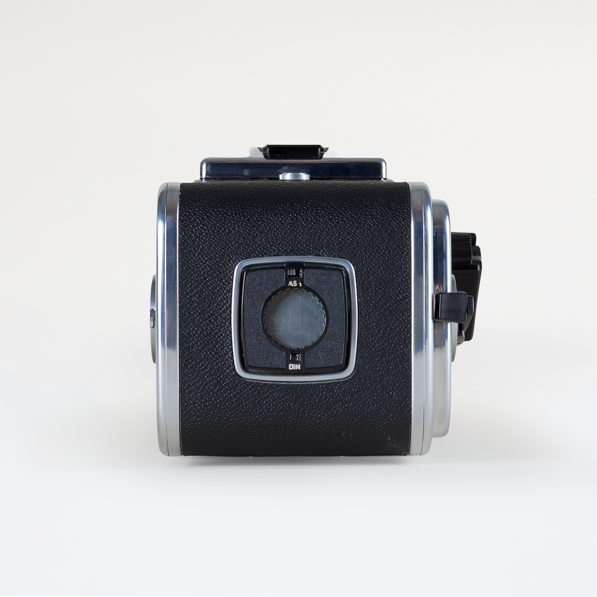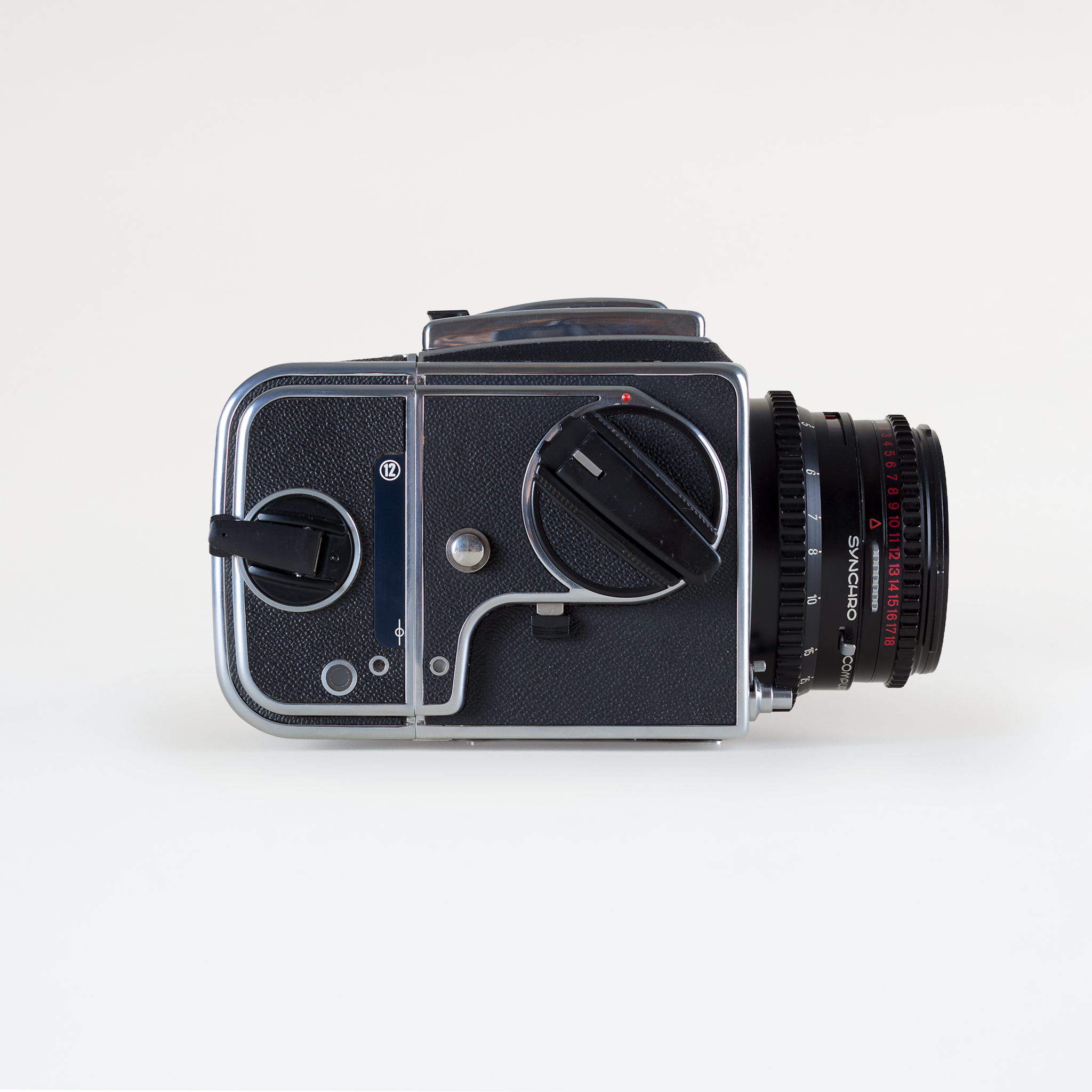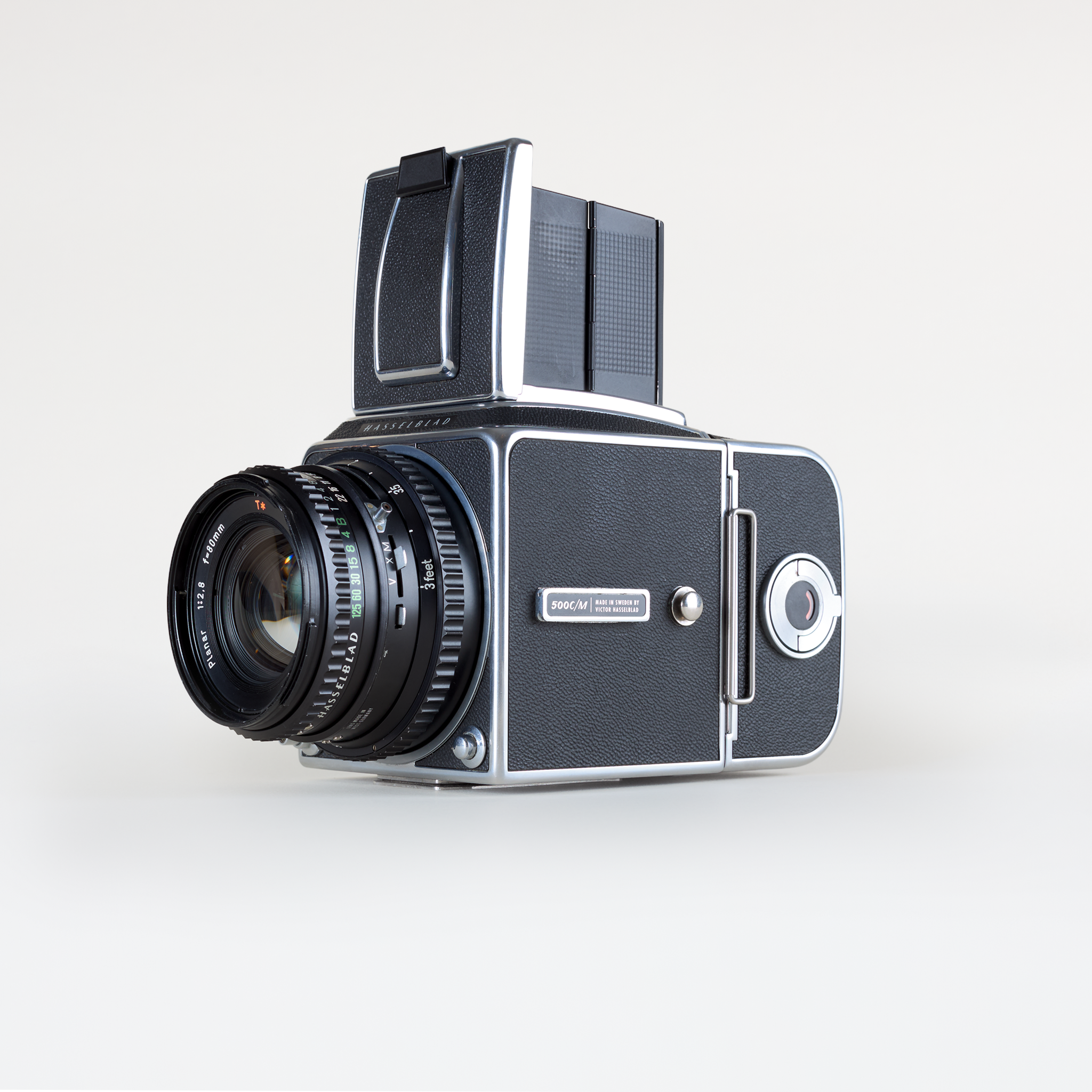 Built in Sweden, the 500 CM features a leaf-shutter lens system, interchangeable film backs, and bright waist-level finder