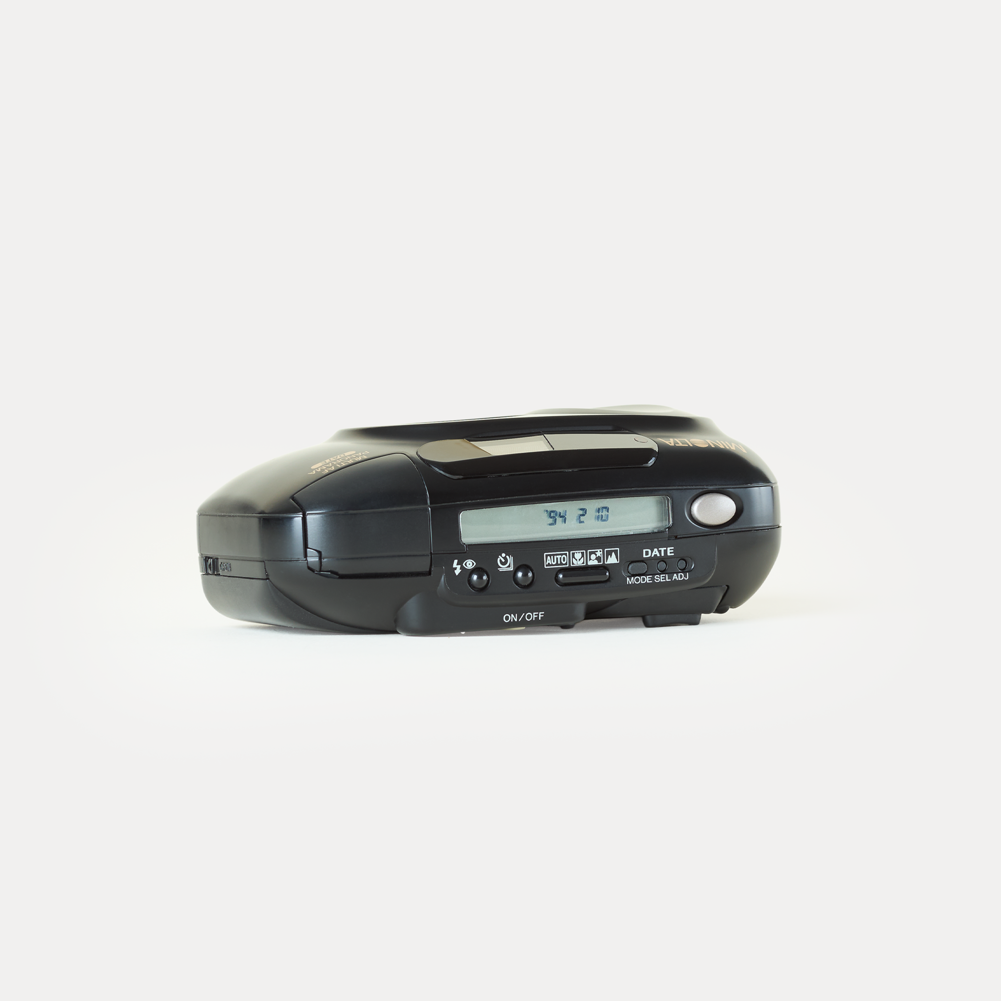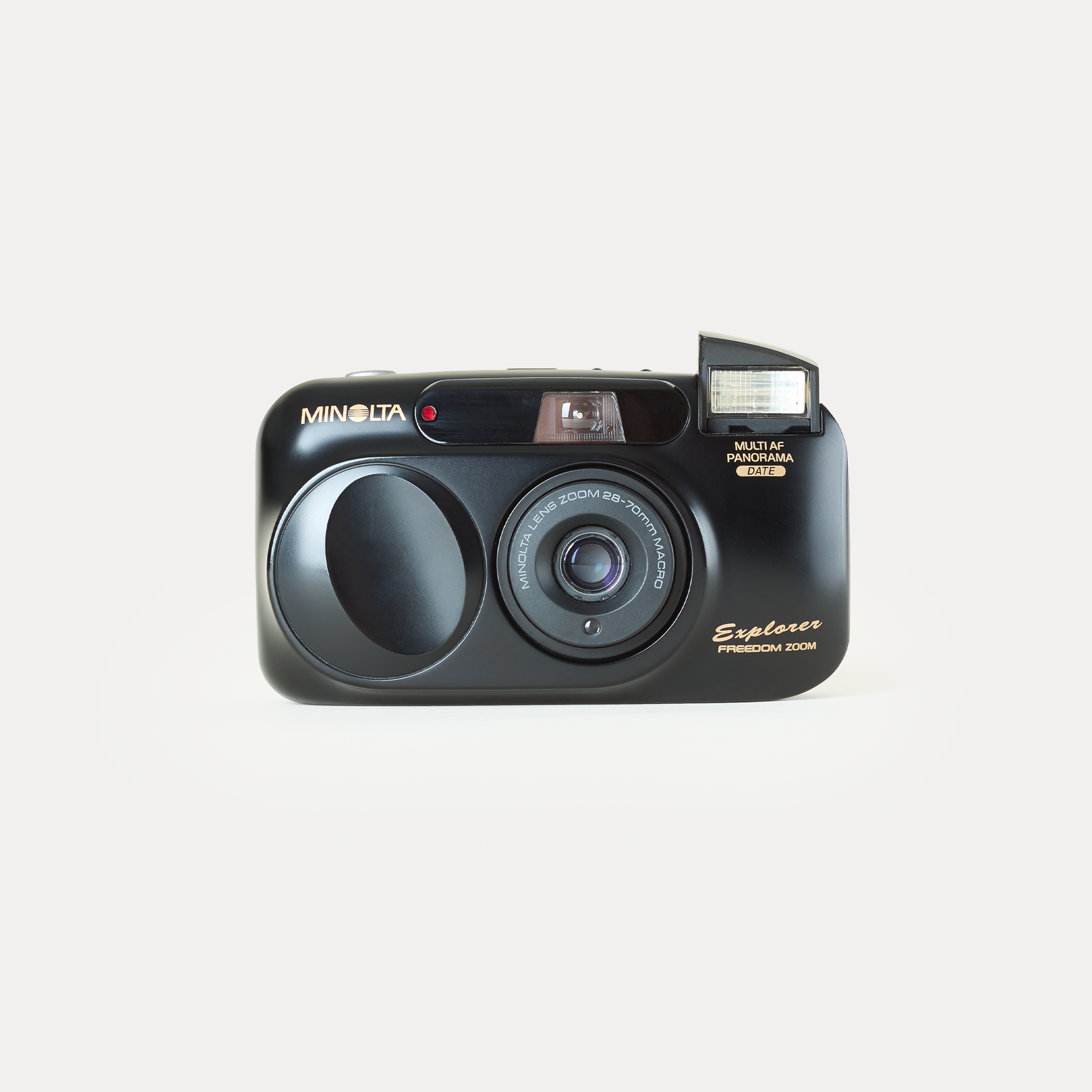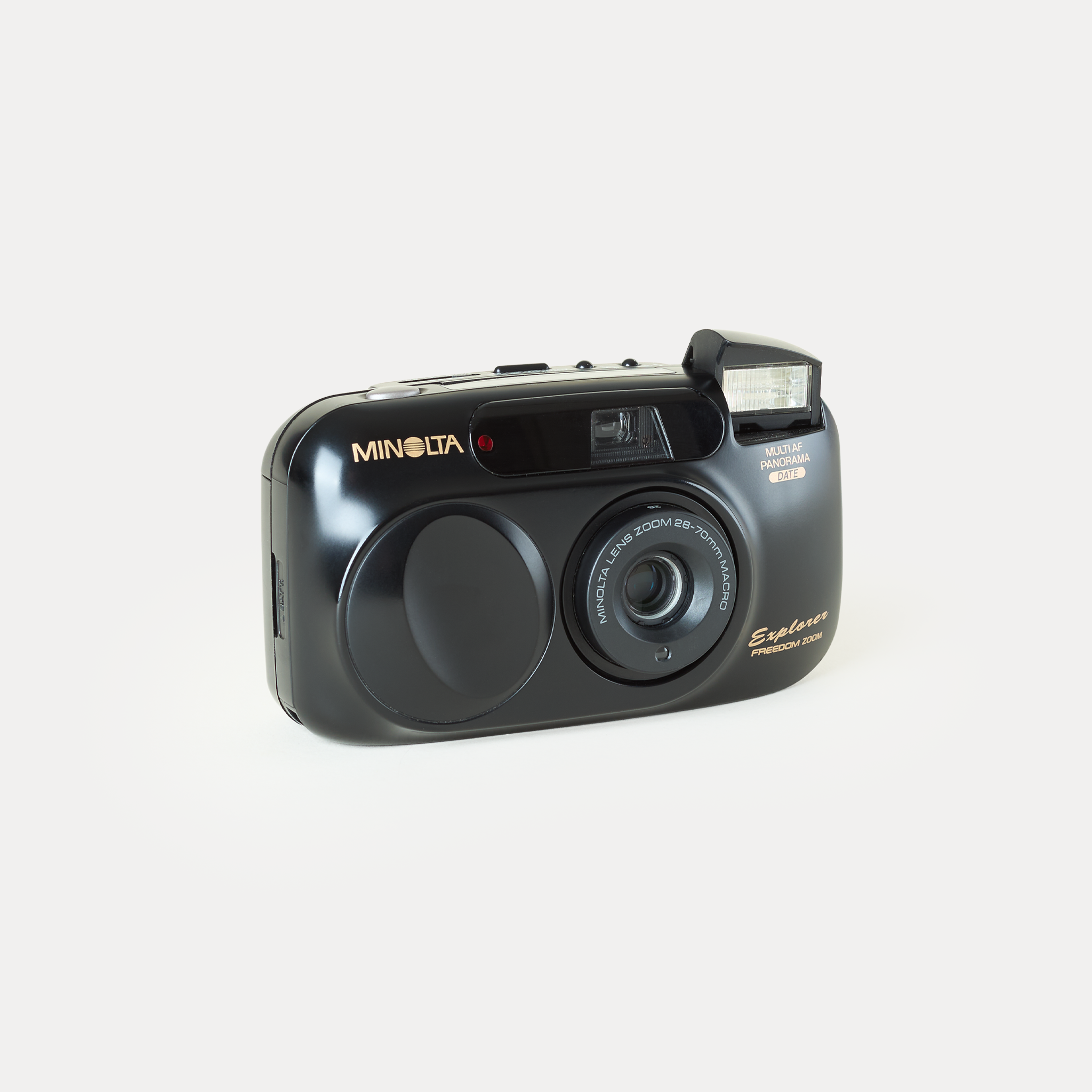The Minolta Explorer Freedom Zoom is a straightforward 35mm point-and-shoot made for easy, everyday shooting. Its built-in zoom lens covers wide scenes through tighter portraits, while autofocus and auto exposure keep things quick and reliable for travel, parties, and casual carry.