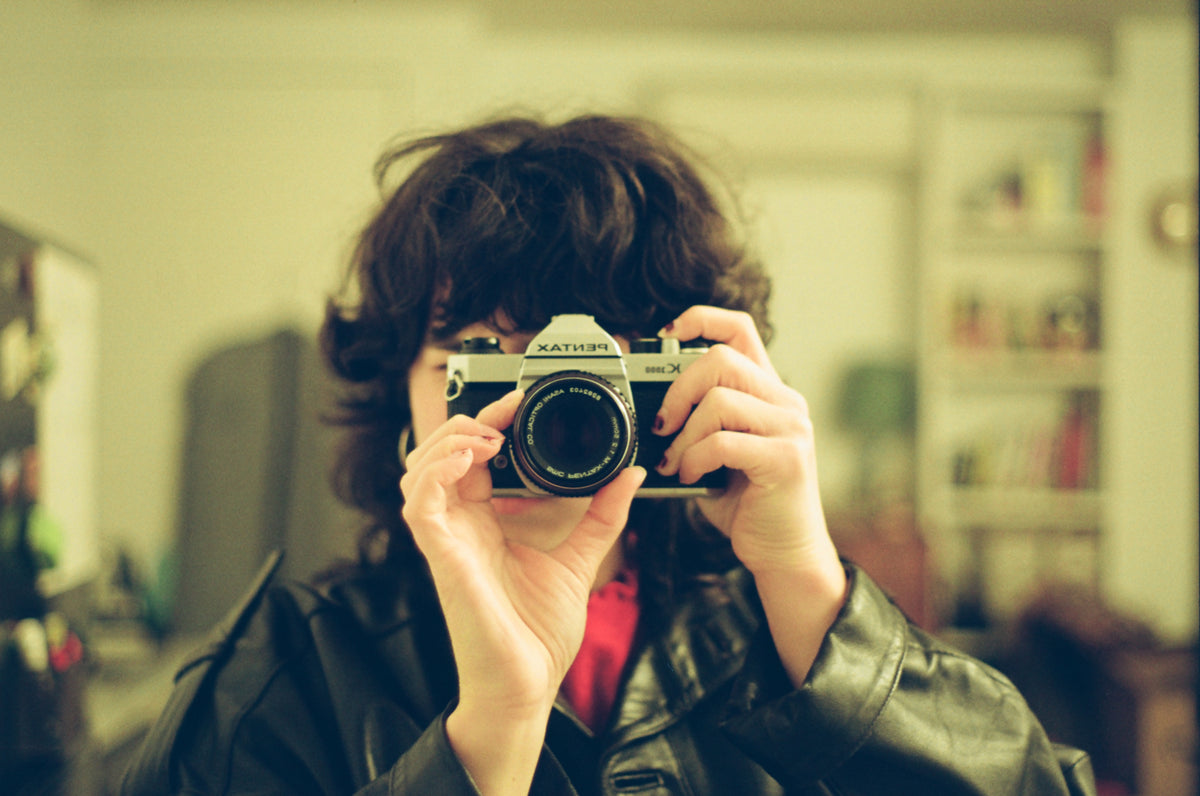 The Pentax K1000 is a fully manual 35mm single-lens reflex camera. It has shutter speeds ranging from bulb (indefinite exposure) to 1/1000th of a second and an intuitive light meter in the viewfinder. It comes with a fast 50mm f/2 lens,