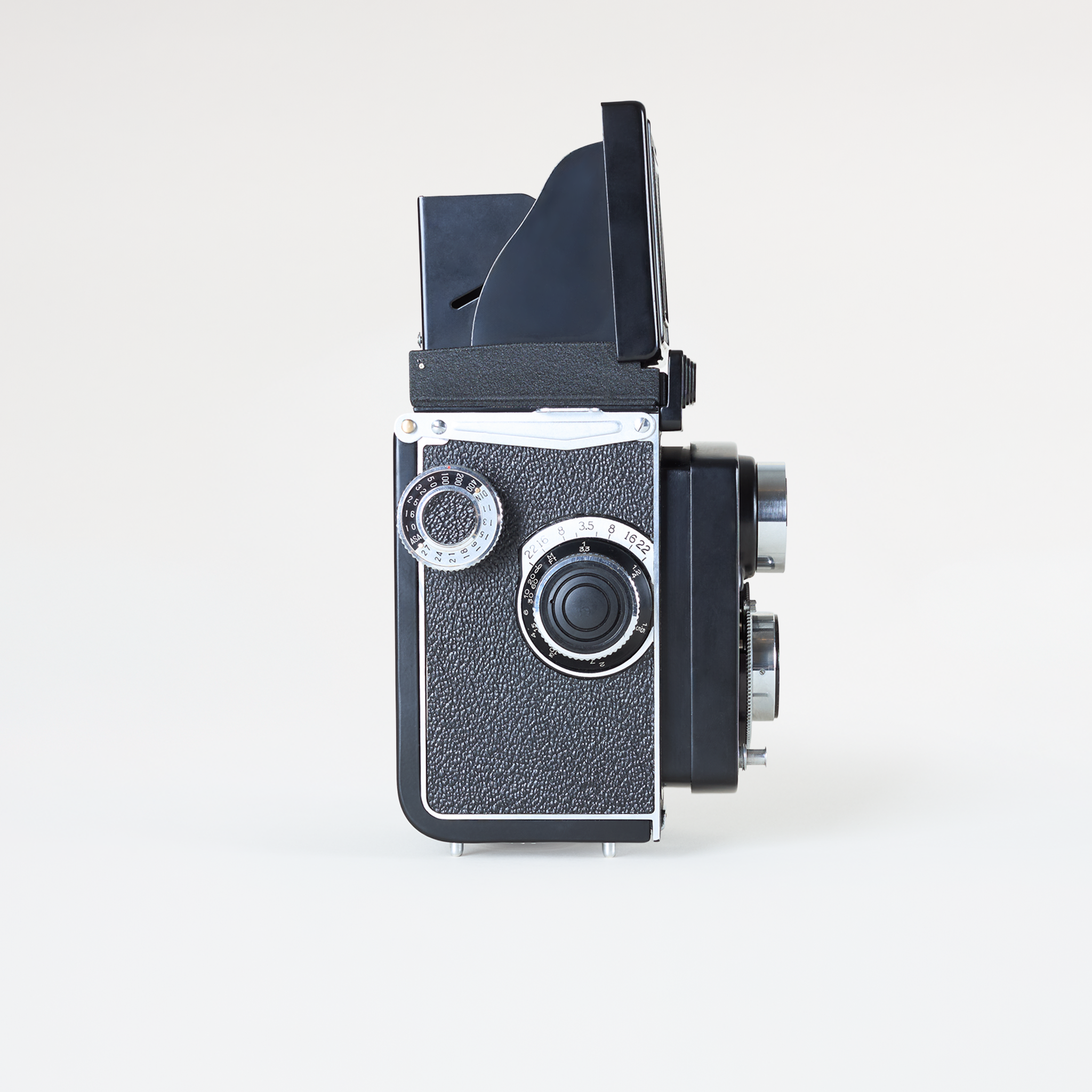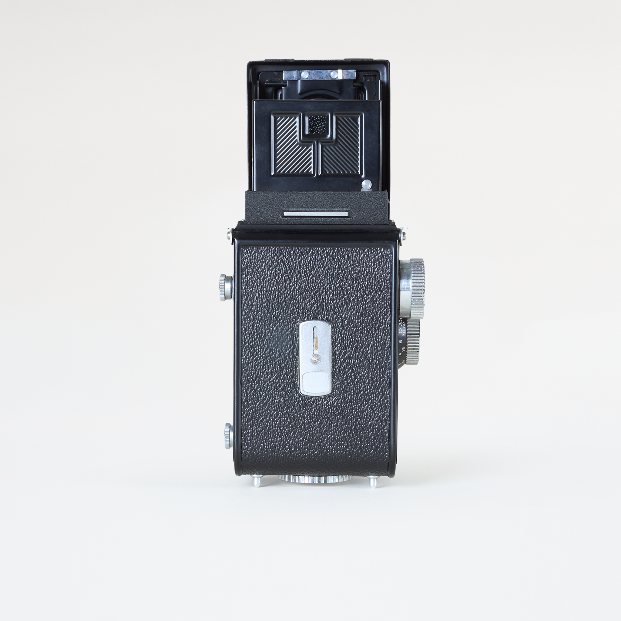The Yashica A was the first medium format twin-lens reflex (TLR) camera released by Yashica. It features shutter speeds from 1/25th of a second to 1/300th, an aperture range of f/3.5 to f/22, and a ground-glass viewfinder with a focus magnifier.